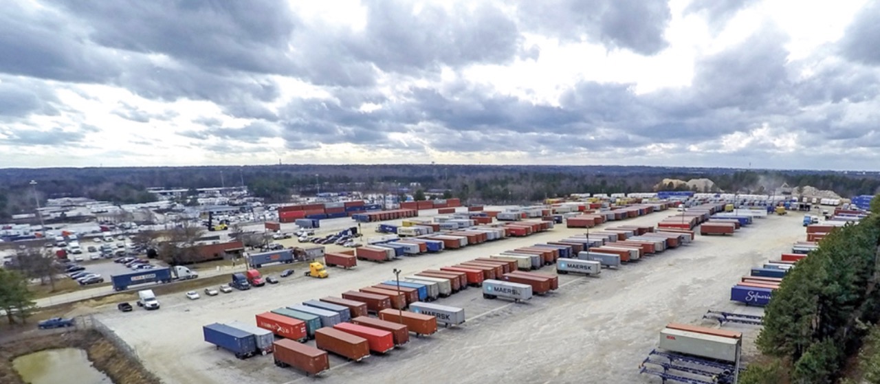 Pop-up container-storage yards, such as this inland facility in Crandall, Ga., help relieve the demands on port terminals.